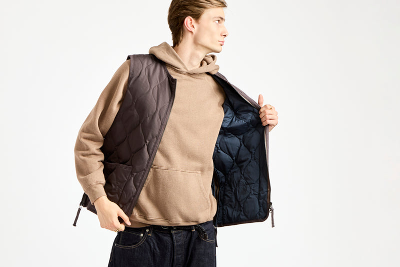 Military Crewneck Zip Down Vest in Dark Chocolate