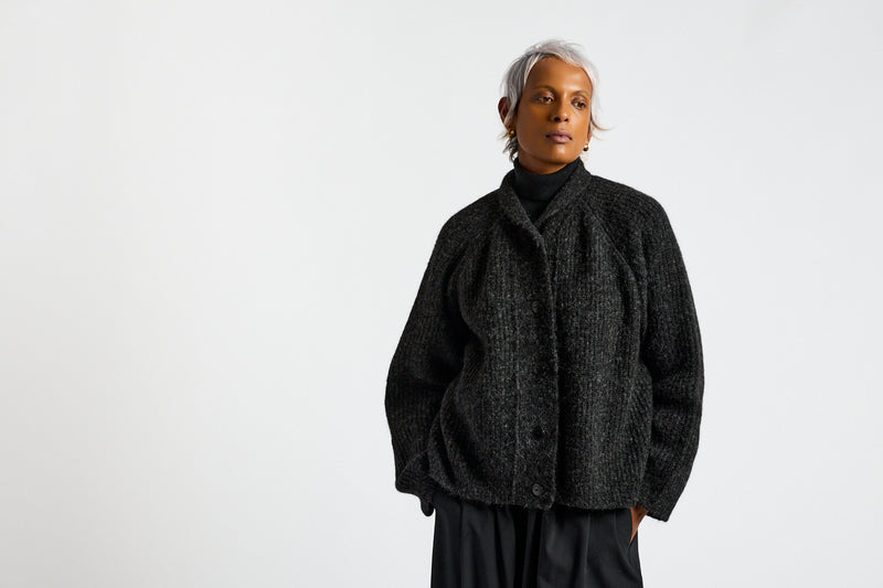 Sandos Rib Zip Through Jumper in Darkest Navy
